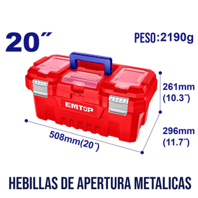 Caja plastica 20pul 508x296x261 c/bandeja 22KG CIERRE METALICO EMTOP EPBX2002