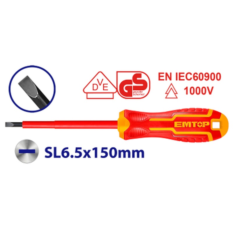 Destornillador 1000V Certif INDUSTRIAL PL6,5x150mm Cr-v EMTOP ESDRJ6150