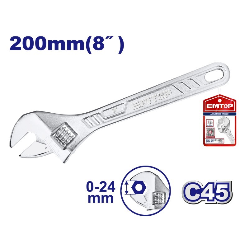 Llave ajustable 8 pul apertura 24mm EMTOP EAWH130822