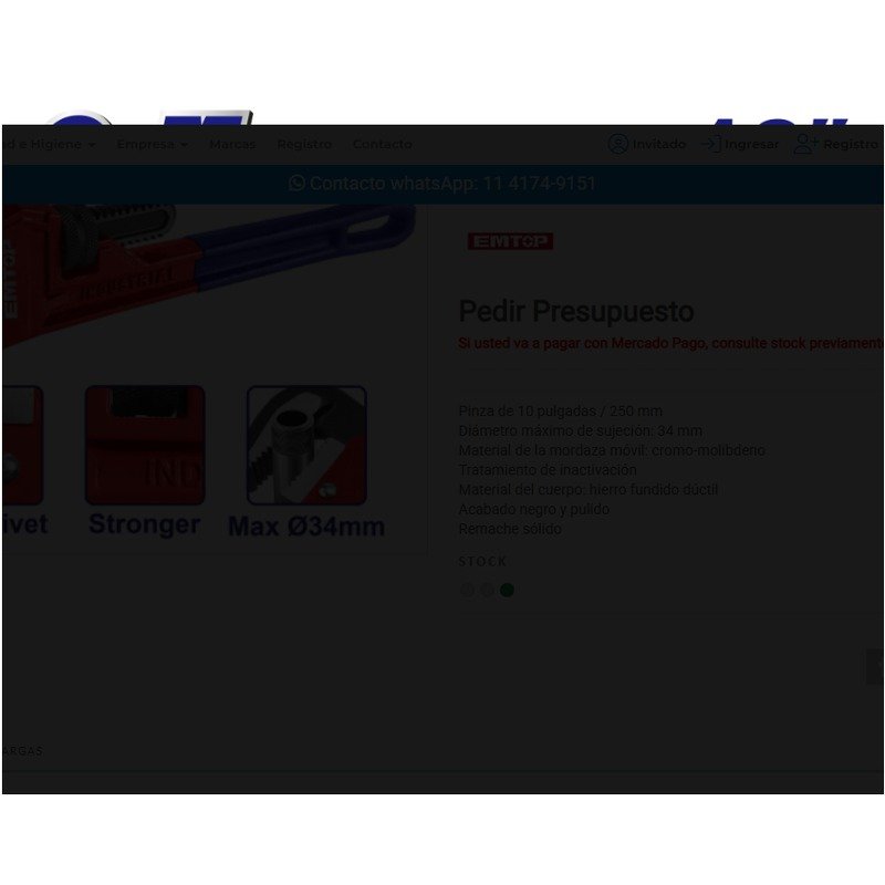 Llave para caño Stilson INDUSTRIAL 250mm max.34mm EMTOP EPWH1001