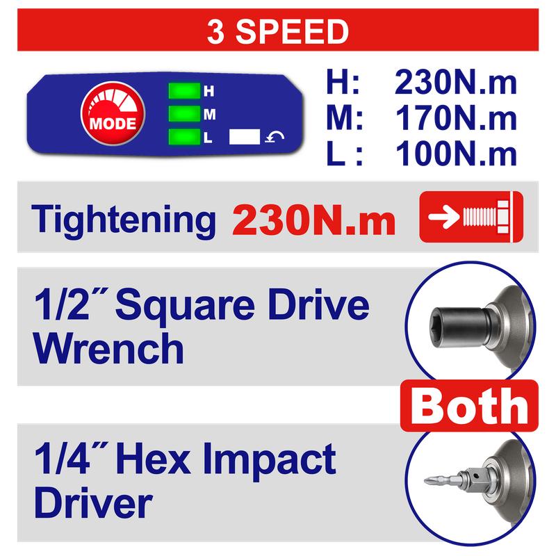 Llave y atornillador impacto 1/2-1/4 BL 230Nm 20V 2 bat 2Ah/cargador EMTOP ECIWL20236-4