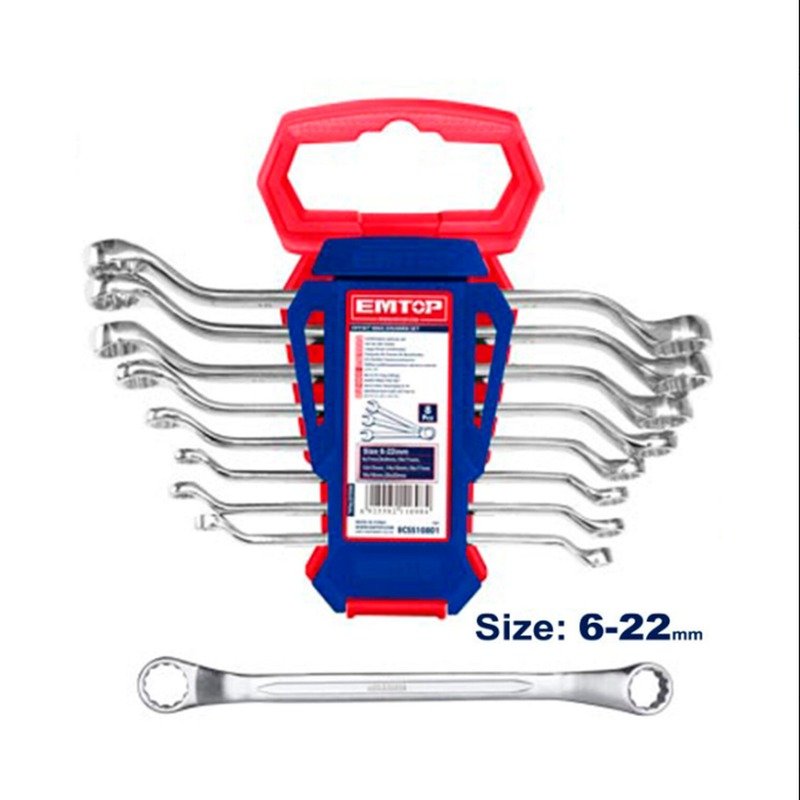 Set de 8 llaves estriadas acodadas 6-22 EMTOP EFRS10801