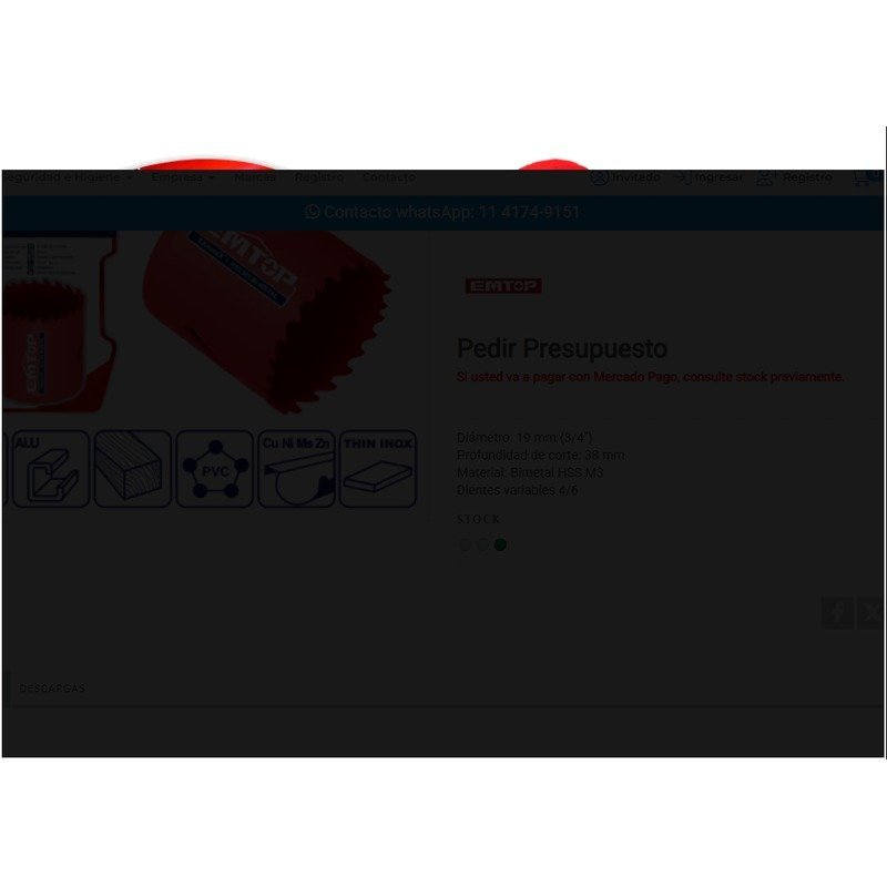 Sierra Copa HSS bimetal 19mm EMTOP EHSW10191